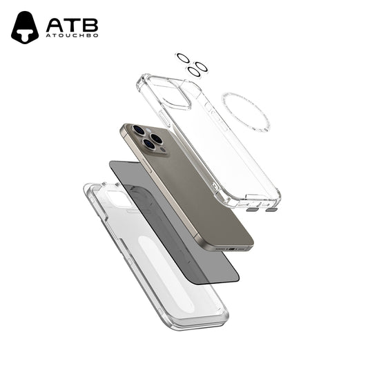 ATB 5-in-1 iPhone Case Set with Shockproof Airbag Case, Privacy Tempered Glass, Lens Protectors - Magnetic Ring and Dust Stickers for iPhone 11 and above